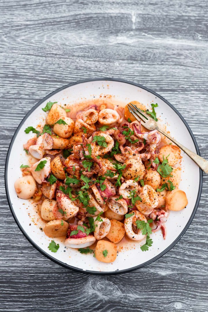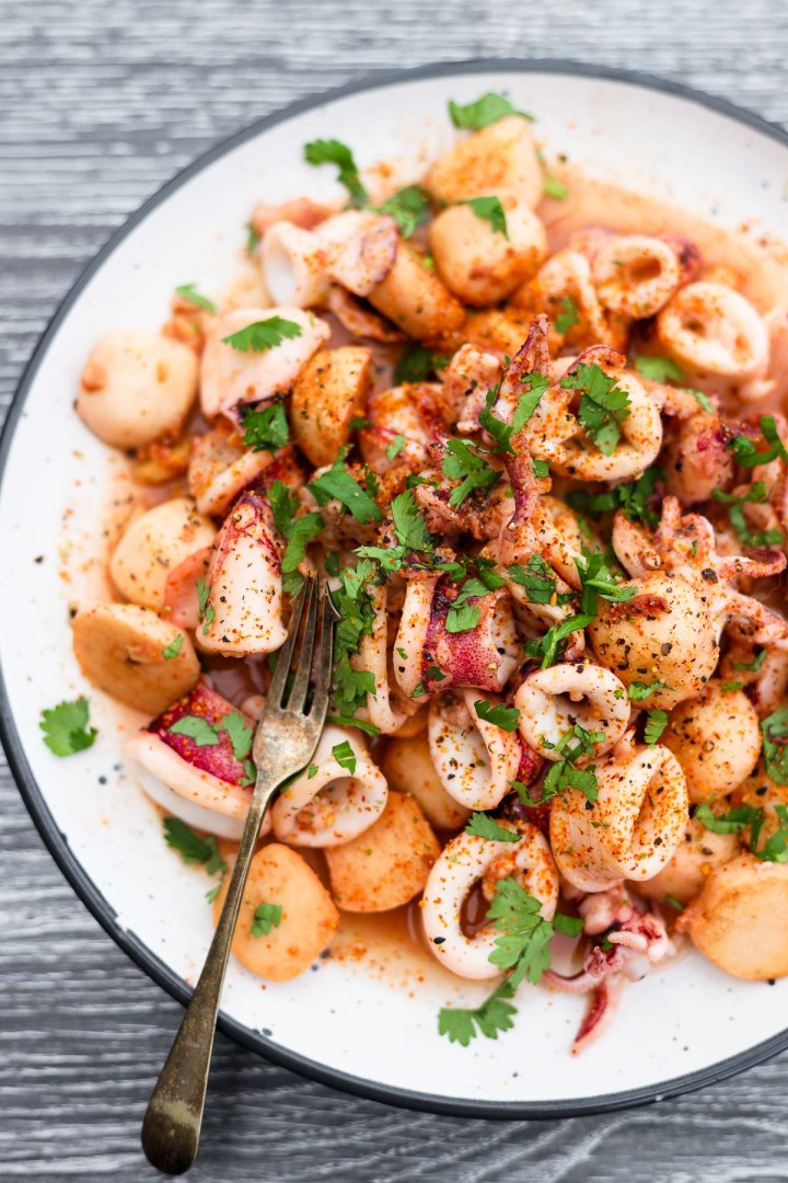 Ce calmar de style méditerranéen propose de tendres balles de calmar et de calmar dans de l’huile d’olive à l’ail avec citron, piment et persil, prêt en 15 minutes. Les calmars tendres rencontrent du citron brillant et du piment épicé dans cette fusion méditerranéenne-asiatique. Parfait comme des tapas ou avec du riz – prêt en 15 minutes. #Squidrecipe