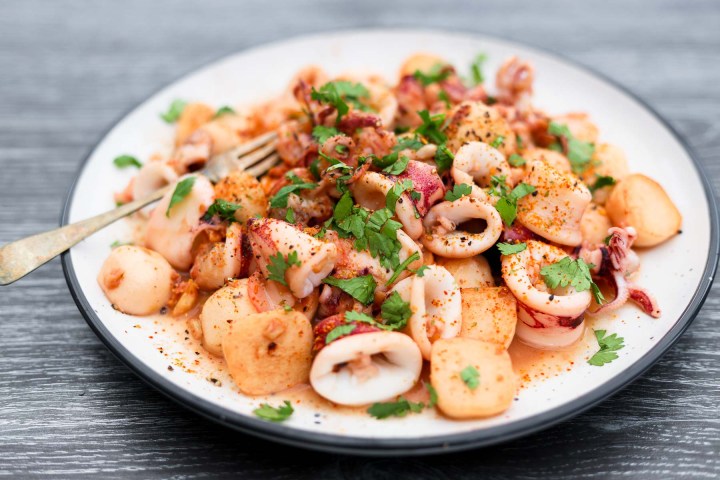 Ce calmar de style méditerranéen propose de tendres balles de calmar et de calmar dans de l’huile d’olive à l’ail avec citron, piment et persil, prêt en 15 minutes.