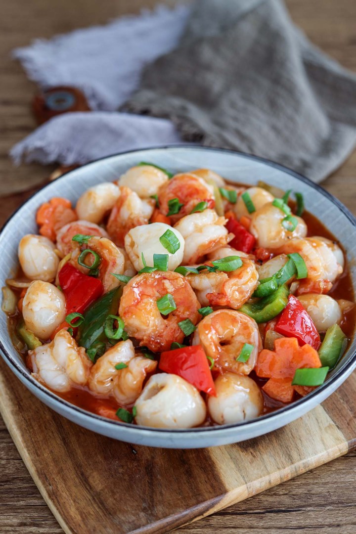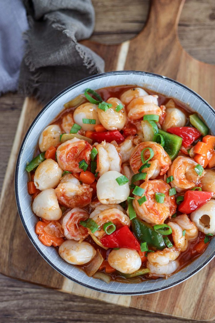 Cela peut sembler étrange au début – les lyches dans un sauté? Mais essayez-le et vous verrez à quel point cela fonctionne. Ils sont tendres, juteux et légèrement floraux, ce qui complète la douceur des crevettes et la saveur de la sauce. Dans cette recette, j’utilise des lychys en conserve (facile à trouver dans les magasins asiatiques ou même les supermarchés locaux), les utilise en entier ou les révèlent de moitié afin qu’ils soient plus de la taille d’une bouchée et plus faciles à manger avec du riz.