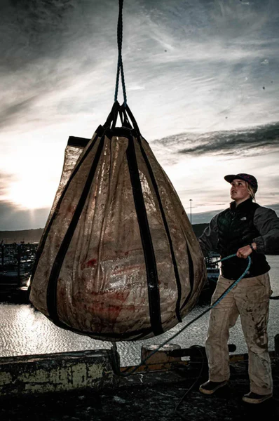 « Dans notre entreprise, nous adoptons une approche pratique de la manipulation de nos poissons (littéralement !). Chacun est soigneusement inspecté et livré individuellement dans notre bac de quai pour garantir sa qualité. Pour maintenir le meilleur état possible, nous limitons le nombre de poissons dans chaque bac à environ 100, soit la moitié de la charge standard. Cela nous permet de garder le poisson au froid avec de la glace fondante et d’éviter les meurtrissures et les déchirures. »