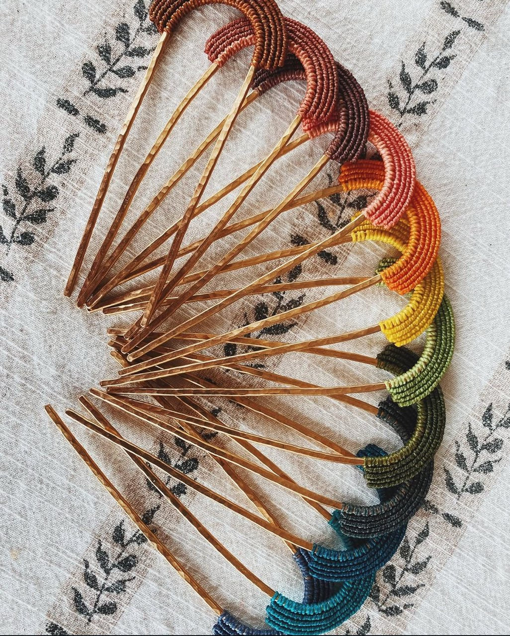 Nous adorons ces belles pièces faites à la main par l’artiste Cayla McCutcheon. Son travail comprend un mélange de métal et de fibres pour créer des bijoux complexes en micro macramé. Si vous souhaitez apprendre ou offrir un nouveau passe-temps cet hiver, vous pouvez trouver des ateliers et des kits de macramé sur son site Web.