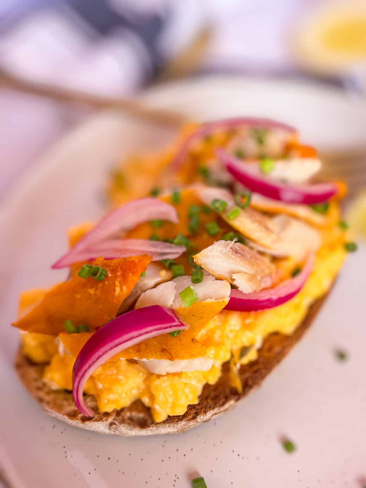 Si vous êtes comme moi et que vous aimez le poisson fumé pour le petit déjeuner, essayez ma salade de saumon fumée chaude sur du pain grillé ou de la lox et des bagels classiques pour des options matinales plus délicieuses.