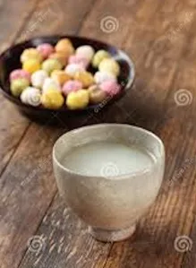 L’amazake est une boisson traditionnelle japonaise sucrée et épaisse à base de riz gluant fermenté. Amazake signifie littéralement « alcool doux », mais il contient moins de 1 % d’alcool Shirozake. Les enfants peuvent donc aussi en boire.