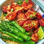 J’adore servir des piqûres de saumon croustillantes dans le cadre d’une fête du temps chaud avec une salade feta de pastèque acidulée ou ma salade d’avocat méditerranéen. Ils sont également délicieux avec un côté de couscous de perle citronné avec des épinards et des asperges blanchies pour un dîner plus copieux.