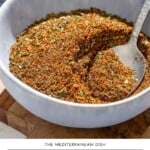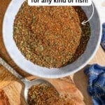 • Mélanger et stocker. Utilisez un petit fouet ou une fourche pour combiner. Assurez-vous de briser les touffes et de mélanger jusqu’à ce que les herbes et les épices soient réparties uniformément. Transférer le mélange d’assaisonnement de poisson dans un pot et fermer étroitement le couvercle.Fish assaisonnant dans un bol avec une cuillère sur un plateau en bois.Fish assaisonnant dans un bol avec une cuillère sur un plateau en bois.