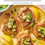 Ce que j’aime le plus dans cette recette, c’est la facilité avec laquelle il est possible de changer les choses. Gardez les choses simples et servez-le avec une tranche de citron ou faites-le avec fantaisie. Voici mes façons préférées de garnir les filets de vivaneau rouge :