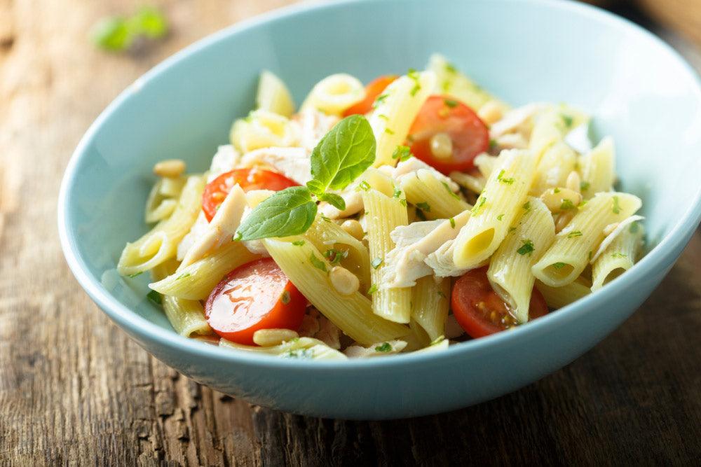 Cette salade de pâtes bien garnie est une concoction créative de tout ce qui concerne l’été. La vinaigrette à base de beurre fondu et de mayonnaise est bien assaisonnée de citron frais, de moutarde de Dijon et de Old Bay. Des tomates cerises fraîches, des concombres, des oignons rouges, du maïs sucré et des herbes sont accompagnés de succulents morceaux de chair de crabe géante, de saucisses d’été coupées en dés et de bouchées de bébé mozzarella. Tout le monde va adorer cette salade.