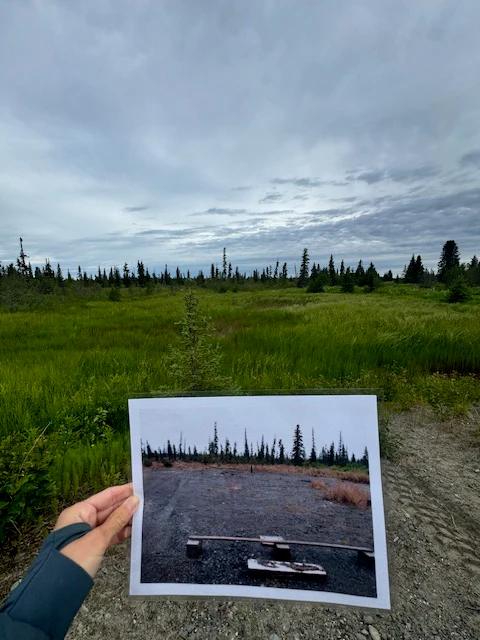 Notre excursion a commencé au pont de Stariski Creek, le long de la Sterling Highway, où nous nous sommes rassemblés pour faire du covoiturage jusqu’à notre premier site sur le terrain – un canal en amont de Stariski Creek, surplombant la propriété appartenant au Land Trust que nous appelons « Stariski Meadows ».